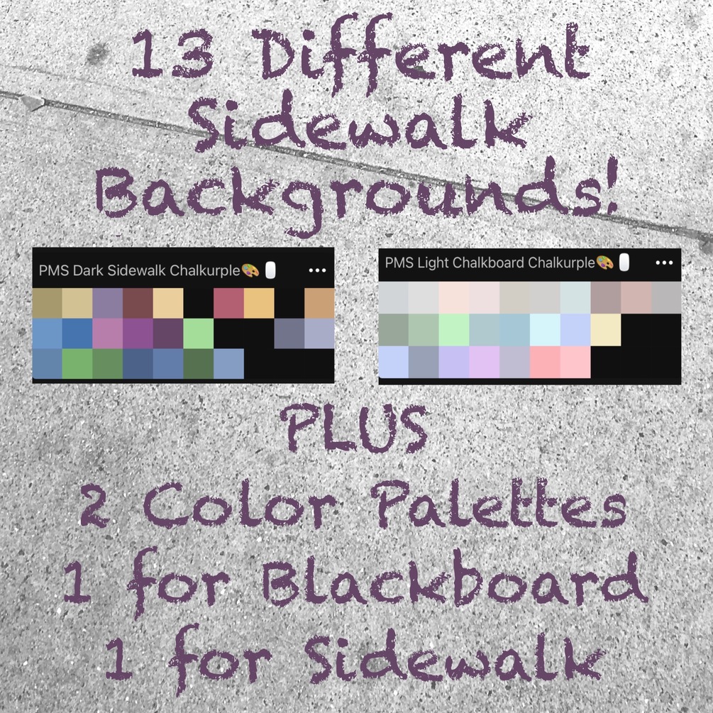 I've also included 2 color palettes and the Chalkboard backgrounds in zip files for use in other apps or for printing.