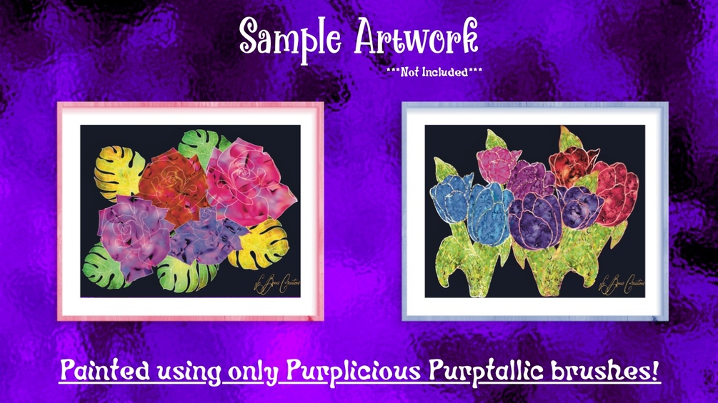 Well....... You can actually COLOR / PAINT with these metallics! They're positively Purplicious (hence the name lol)! Be sure to check out the sample art pieces posted with these sets in the detail images ~ a very dear friend of mine did all these pieces for me to display, and she's absolutely hooked on these brushsets :D